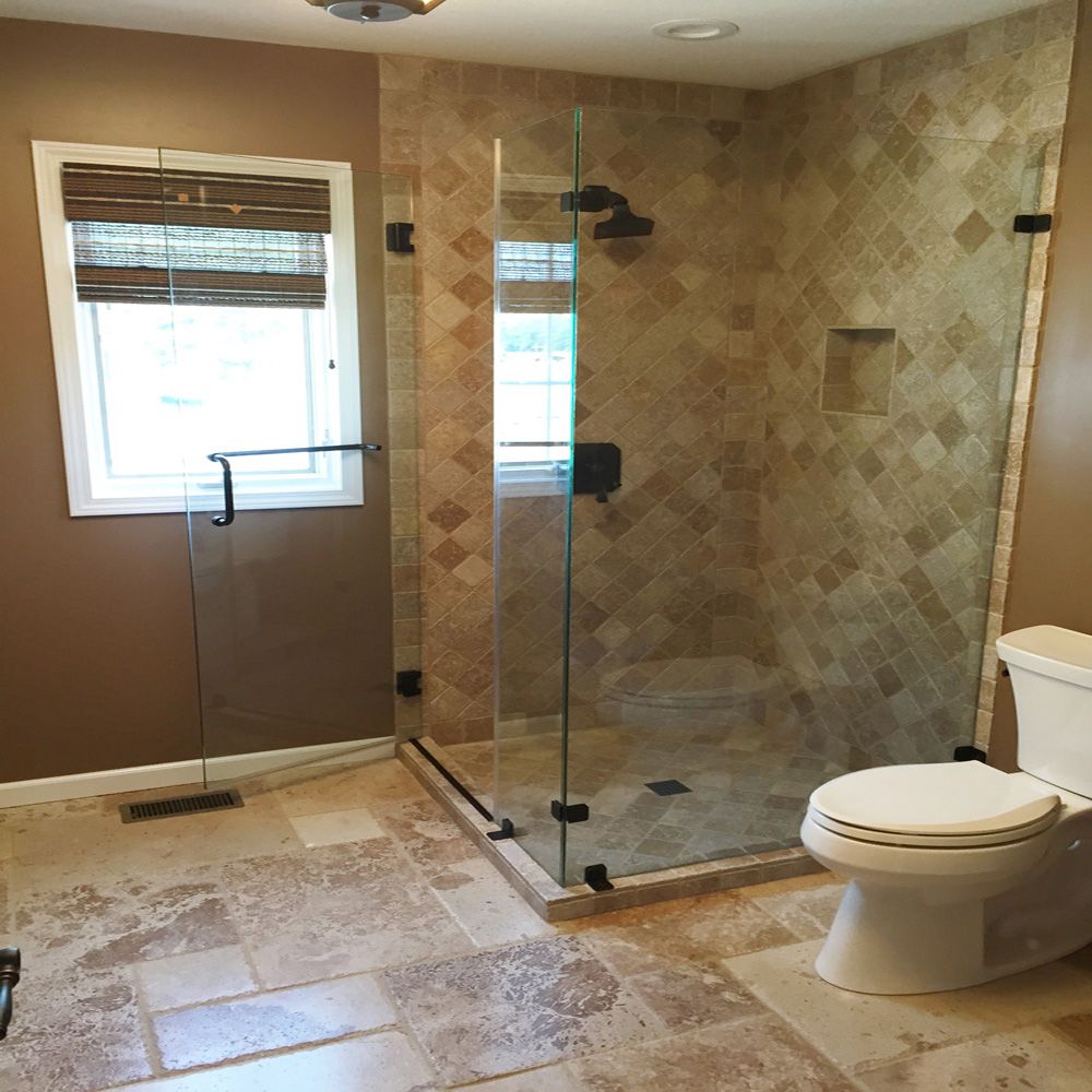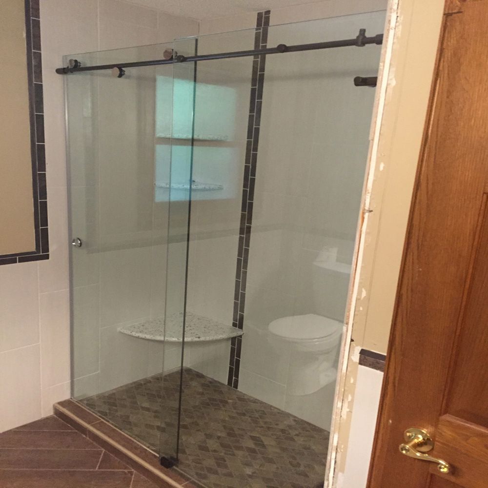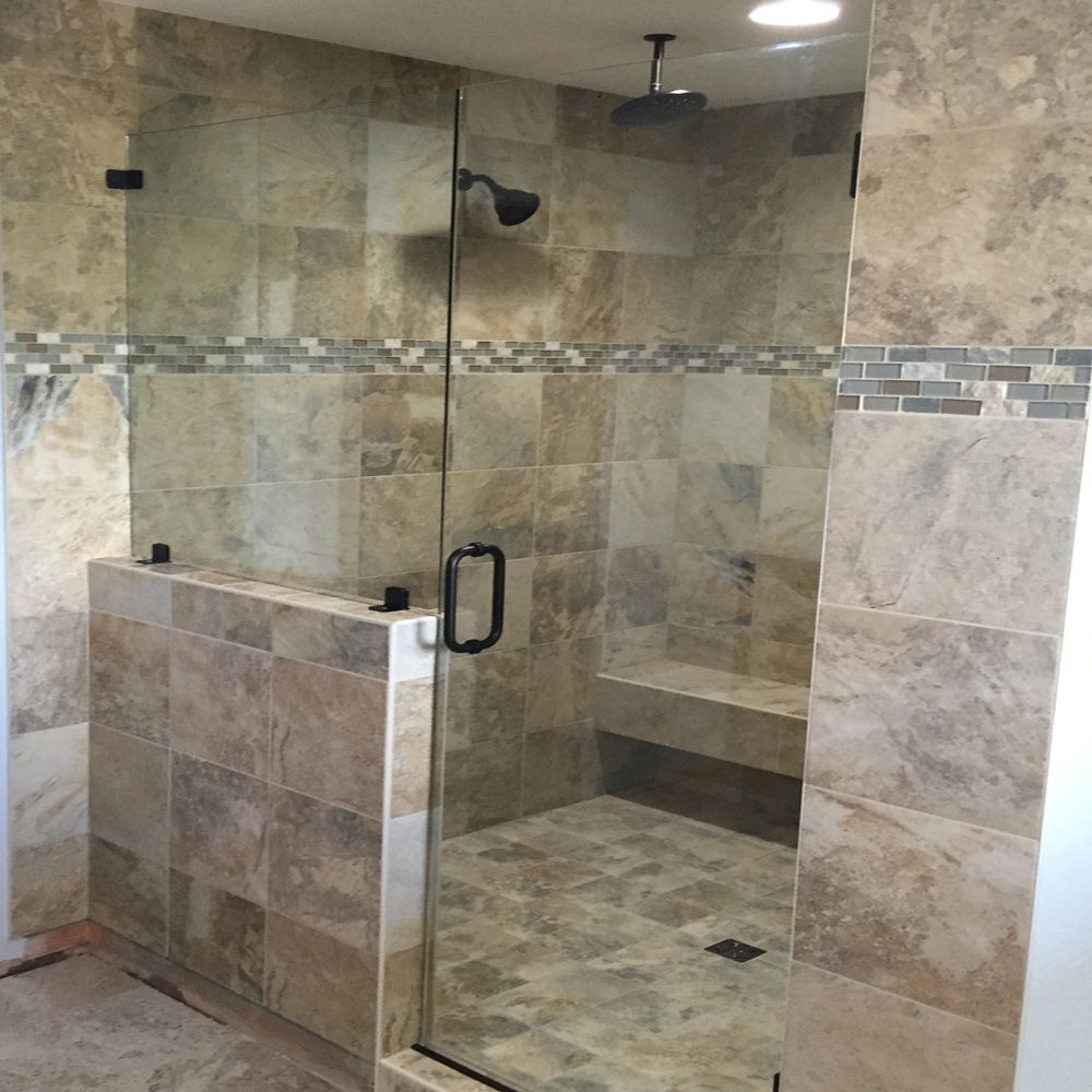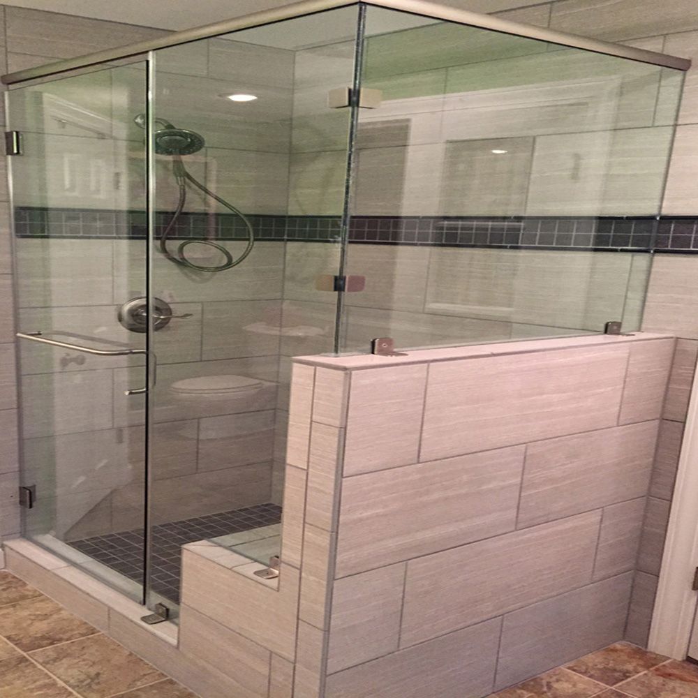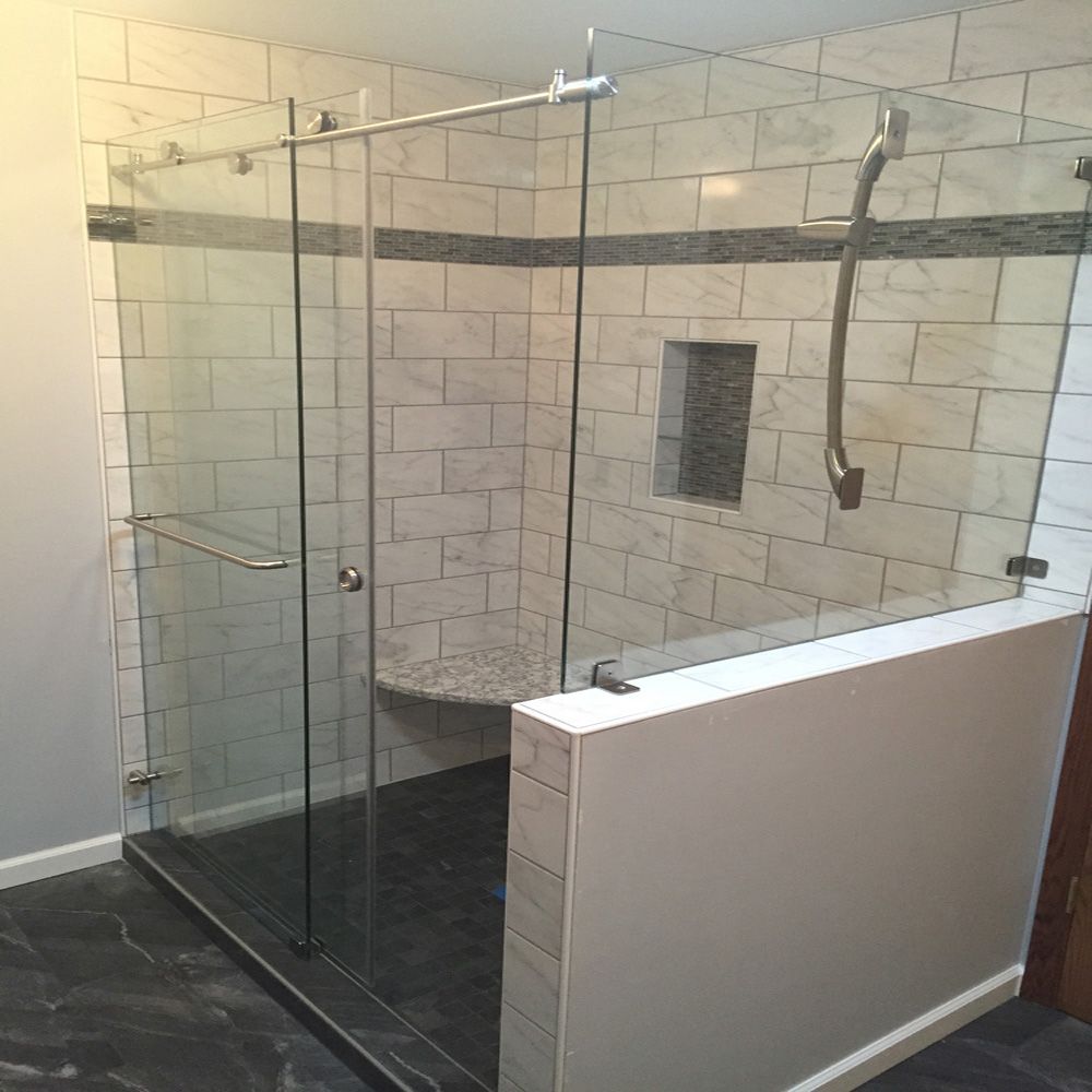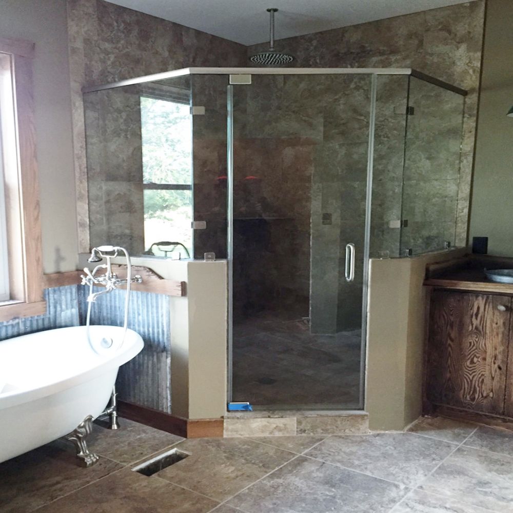 Custom Skyline - totally frameless - heavy glass with in-glass slidebar hand shower